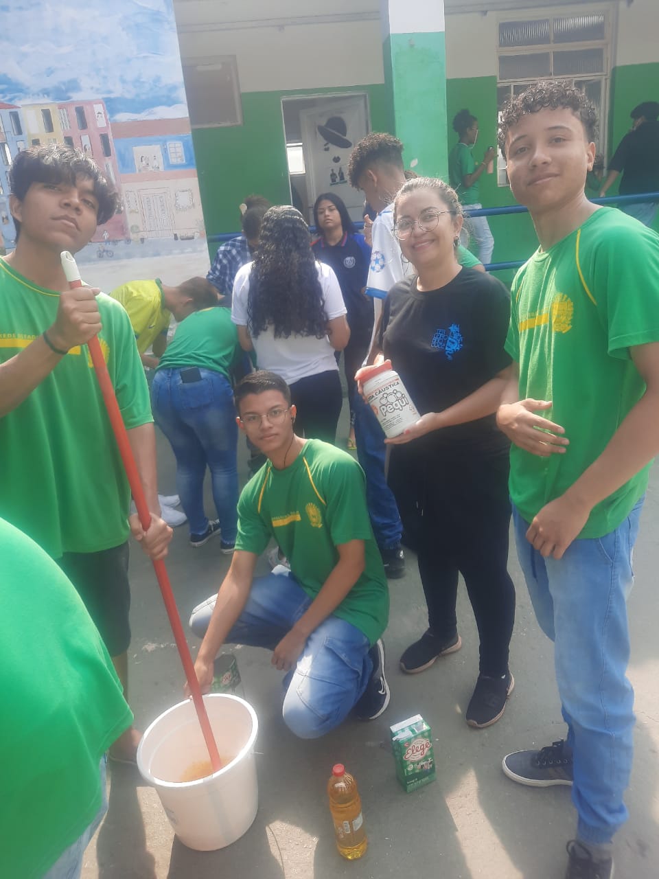 Ação foi realizada na disciplina Unidade Curricular IV, orientada pela professora Kecellyn Barros com o tema “ Não jogue fora o óleo não”.